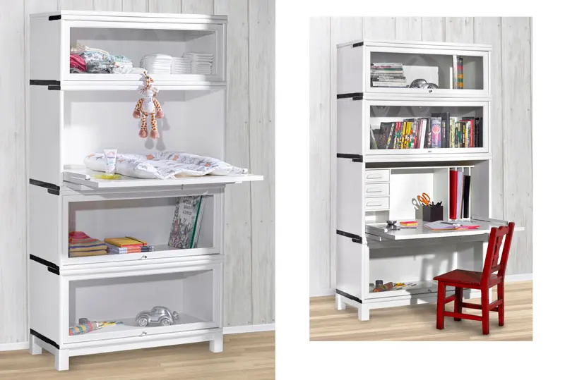 Hyllyjärjestelmän rinnalle mallistosta löytyvät kirjoituspöydät, säätöpöydät, karusellit, sohvapöydät, tuolit ja rulokaapit. Valmiiksi koottujen elementtien pinoaminen päällekkäin ja vierekkäin mahdollistaa sisustusratkaisujen muuntelun elämän eri vaiheissa.